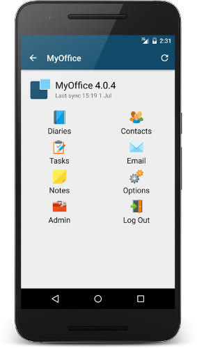 Open the MyOffice app whilst connected to the internet. From the main menu, touch "Admin", then "Calendars" in the admin menu to open up the Calendar Admin activity. If you are unable to see the "Calendars" admin option then you lack Calendar Admin permission.