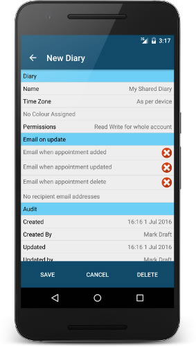 Your Calendar Admin activity will look something like the screenshot above on the right hand side, with the obvious difference that yours will contain different calendars. All Calendar Admin functions are performed through this activity, so it's well worth remembering how to get to it if you're likely to be altering your calendars using a smartphone on a regular basis. It should be noted that Calendar Admin is easier to accomplish with the Windows or Mac apps, although all functionality associated with Calendar Admin is available on Android and iOS.