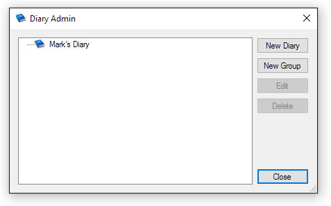 Your Calendar Admin window will look something like the above screenshot, with the obvious difference that yours will contain different calendars. All Calendar Admin functions are performed through this window, so it's well worth remembering how to get to it if you're likely to be altering your calendars on a regular basis.